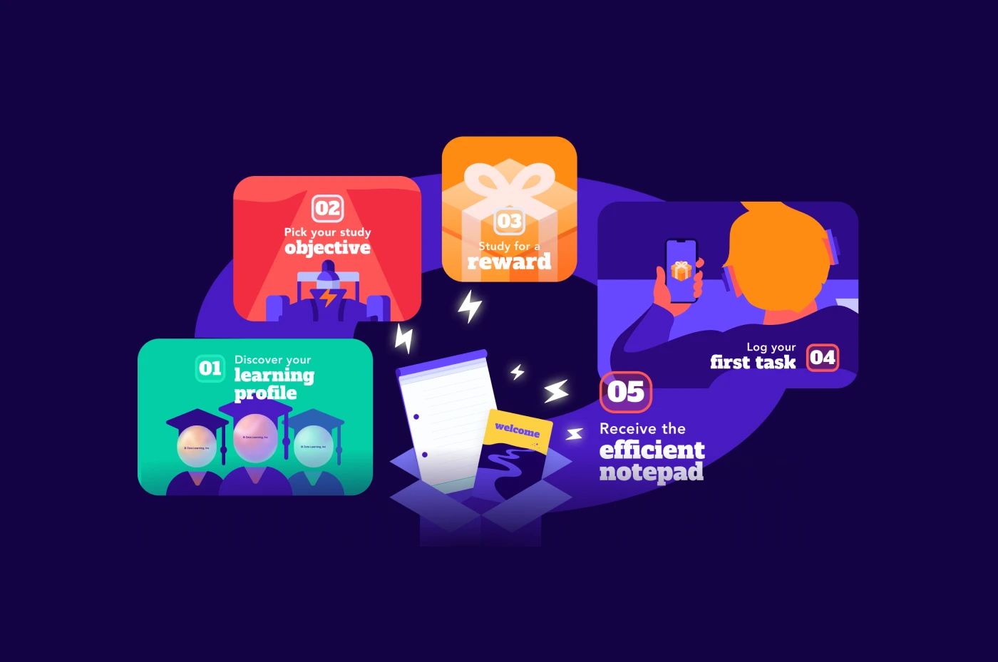 Product design for a mobile application by Zeta Learning, supporting high school students in their independent study time. I led the entire process, from user research to beta testing.